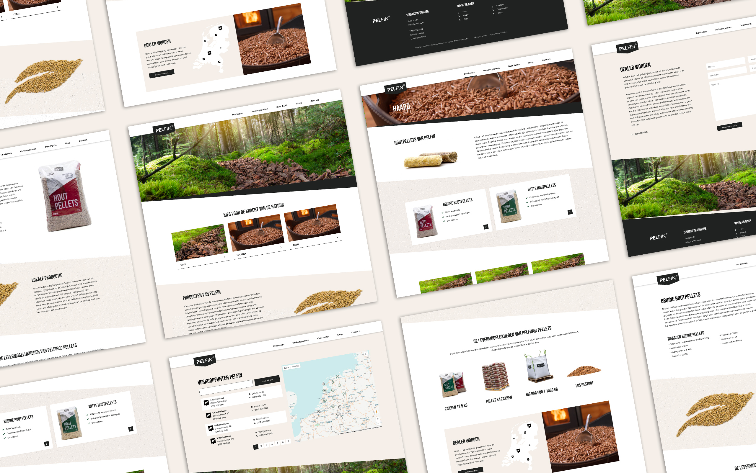 In eerste instantie begon Pelfin alleen met het op de markt brengen van premium houtpellets voor consumenten. Echter merkten ze dat de interesse naar duurzame producten in de markt groter was waardoor er al snel een producten lijn met boomschors en potgrond op werd gezet. Doordat deze producten niet in een doorzichtige verpakking kunnen worden gevuld, moest het concept van de eerste verpakking ook over de kop. We kozen ervoor om door middel van fotografie de prachtige herkomst van de producten te laten zien en gingen met de camera en een paar zakken boomschors de natuur in om hét perfecte plaatje te schieten.